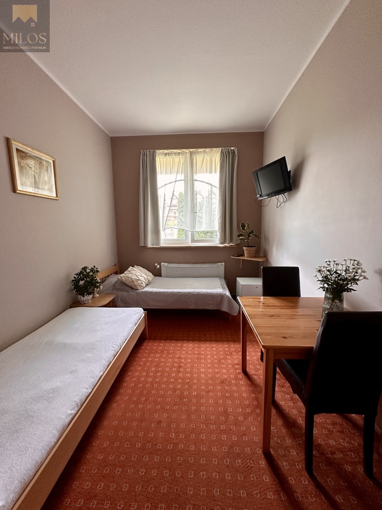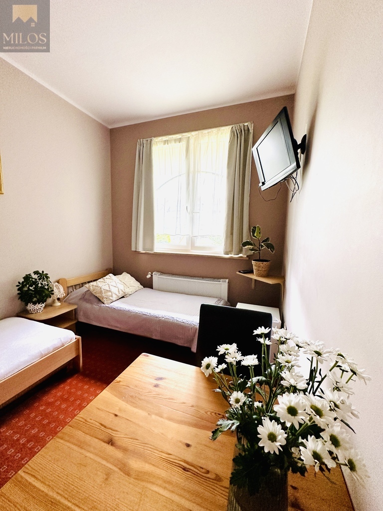 Pensjonat jest sprzedawany z wyposażeniem, jest ogrodzony i na działce mieści się również parking.
