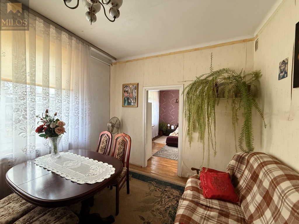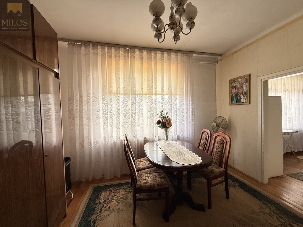 Dom zachował charakterystyczny układ pomieszczeń z tamtych lat. Obecnie pomieszczenia mają układ przechodni, a całą bryłę można obejść dookoła. W skład domu wchodzi pokój dzienny o powierzchni 20 m2, dwa pokoje po 15 m2, kuchnia, łazienka oraz wiatrołap. Budynek daje szerokie możliwości aranżacyjne dla nowych właścicieli, którzy chcieliby odświeżyć lub przebudować przestrzeń według własnych potrzeb.